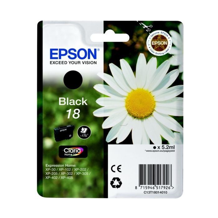 La cartouche Epson d'origine C 13 T 18014010 / 18 - noire convient aux entreprises et collectivités en recherche des produits de la marque Epson.