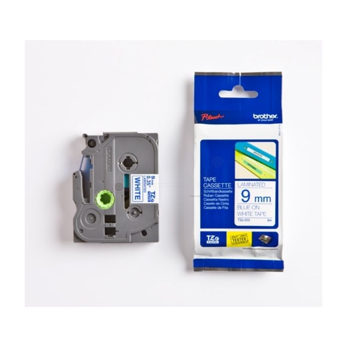 Ruban cassette d'origine Brother TZE223 - bleu, blanc